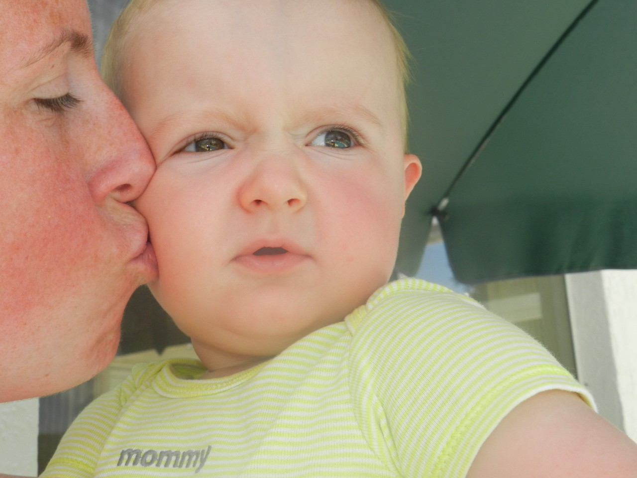 Als Thijs rond de middag wakker wordt van zijn slaapje gaat ook hij lekker in het water maar niet voordat mama en zoen heeft gegeven.