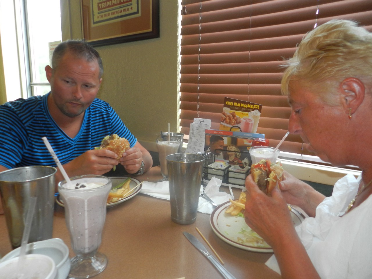Daarna toch maar even eruit voor een hapje eten bij Denny's. Hier kan je je eigen hamburger en milkshake samenstellen. Je kruist aan op het papiertje wat voor soort vlees, broodje, garnering en bijgerecht je wilt en het wordt voor je gemaakt!