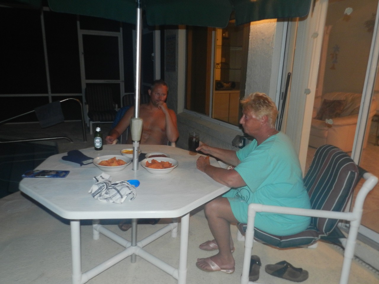 We hadden wat makkelijke hapjes voor thuis gehaald en die hebben we s'avonds gezellig buiten opgegeten. Daarna nog een plons in het zwembad genomen en gerelaxt in de jacuzzi.