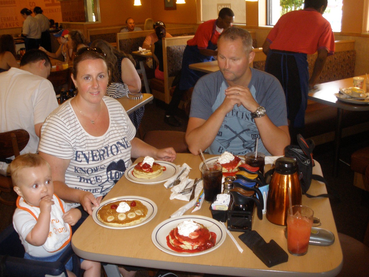 Rond het middag uur gaan we er "even" tussen uit. We gaan pancakes eten bij IHOP (international house of pancakes). Arthur neemt de cheescake pancake, Thijs de kinder pancake en mijn moeder en ik de aarbeien/bananen pancake. Het gaat er allemaal goed in.